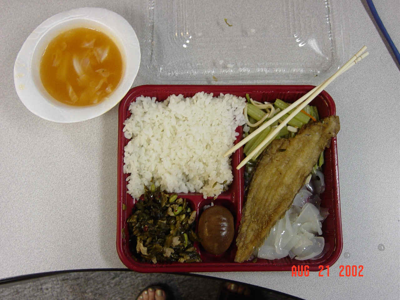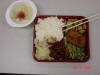 That's the soup in that pot behind the chair....and the stacks of lunchboxes. Only 8RMB per box...
